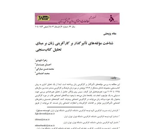 تجزیه و تحلیل پژوهش های موجود در حوزه ی کارآفرینی زنان، بر مبنای تحلیل کتاب سنجی